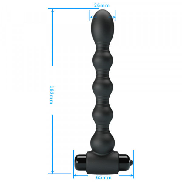 Выполнен вибратор в виде рельефного ствола из 5 шариков различного диаметра. Надежный ограничитель в виде вибропули гарантирует идеальную фиксацию девайса внутри